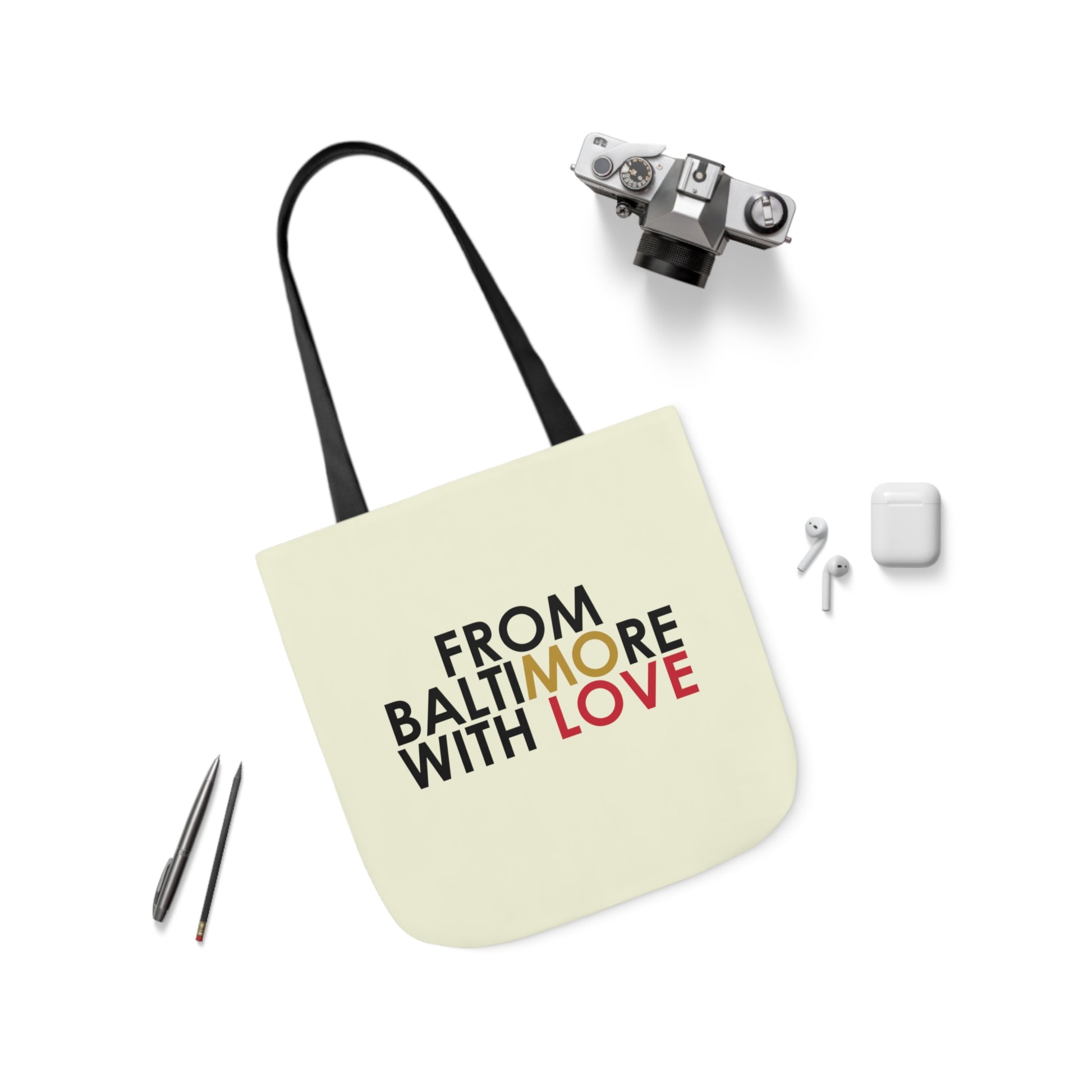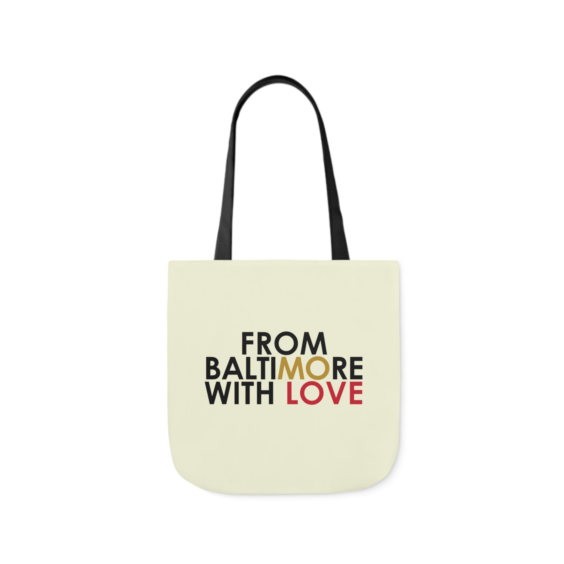 Lightweight, durable, and ideal for printing your artwork in picture-perfect quality—this polyester canvas tote bag does it all. The inside has a sleek, black lining and its comfortable straps.