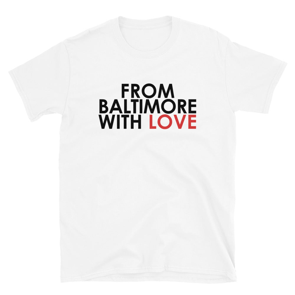white t-shirt, black/red text. Organization's logo printed on back. Portion of proceeds directly supports LTL's initiative.